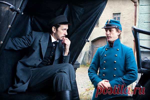 Сцена погружает в атмосферу начала XX века, где два человека, словно олицетворение идеи ожидания и предвкушения, вступают в безмолвный диалог. Мужчина в строгом тёмном костюме, задумчиво облокотившись на дверцу кареты, кажется, перелистывает страницы своей души. Его взгляд проникновен и наполнен внутренней борьбой, его поза изысканно чопорна, но внезапно живой. Спутник в голубой форме рисует образ безмолвного сообщника, чей костюм, как ясное раннее утро, бросает вызов набегающим теням. Их разговор тих, как шелест листьев на утреннем ветру, но едва уловимая искорка понимания соединяет их. Позади — старинный дом, хранитель тысячелетних секретов, которые тонут в прохладной индиго осеннего неба, а камешки мостовой помнят шаги великих. Каждый угол здания дышит историей, поёт баладу о вечном. За кулисами слышны отголоски прошлого, шёпот героев, покидающих сцену времени, но не исчезающих из воспоминаний.