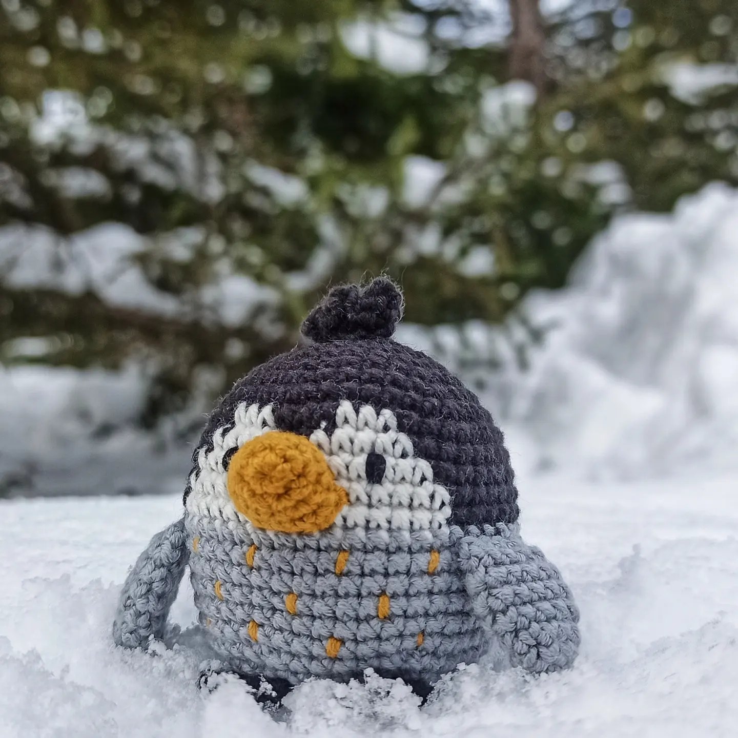Снежное покрывало обнимает землю, мягко сливаясь с пространством. На этом белоснежном плато одиноко застыл маленький вязаный пингвин. Его круглые формы, состязаясь с белизной окружения, кажутся живыми. Внимательный и любопытный взгляд устремляется в мир, полный замороженных чудес. Метелица, легким дуновением, уносит за собой шепот зимы, в котором слышен звук шуршащих снежных кристаллов. И этот пингвин, будто оживший герой альпийских легенд, полон загадок, которые знает только зимняя ночь. Тени деревьев охватывают его нежной заботой, превращая в часть зимней сказки, где каждый куст — это деталь узора природы, а снег — пуховое одеяло, скрывающее затейливые узоры.