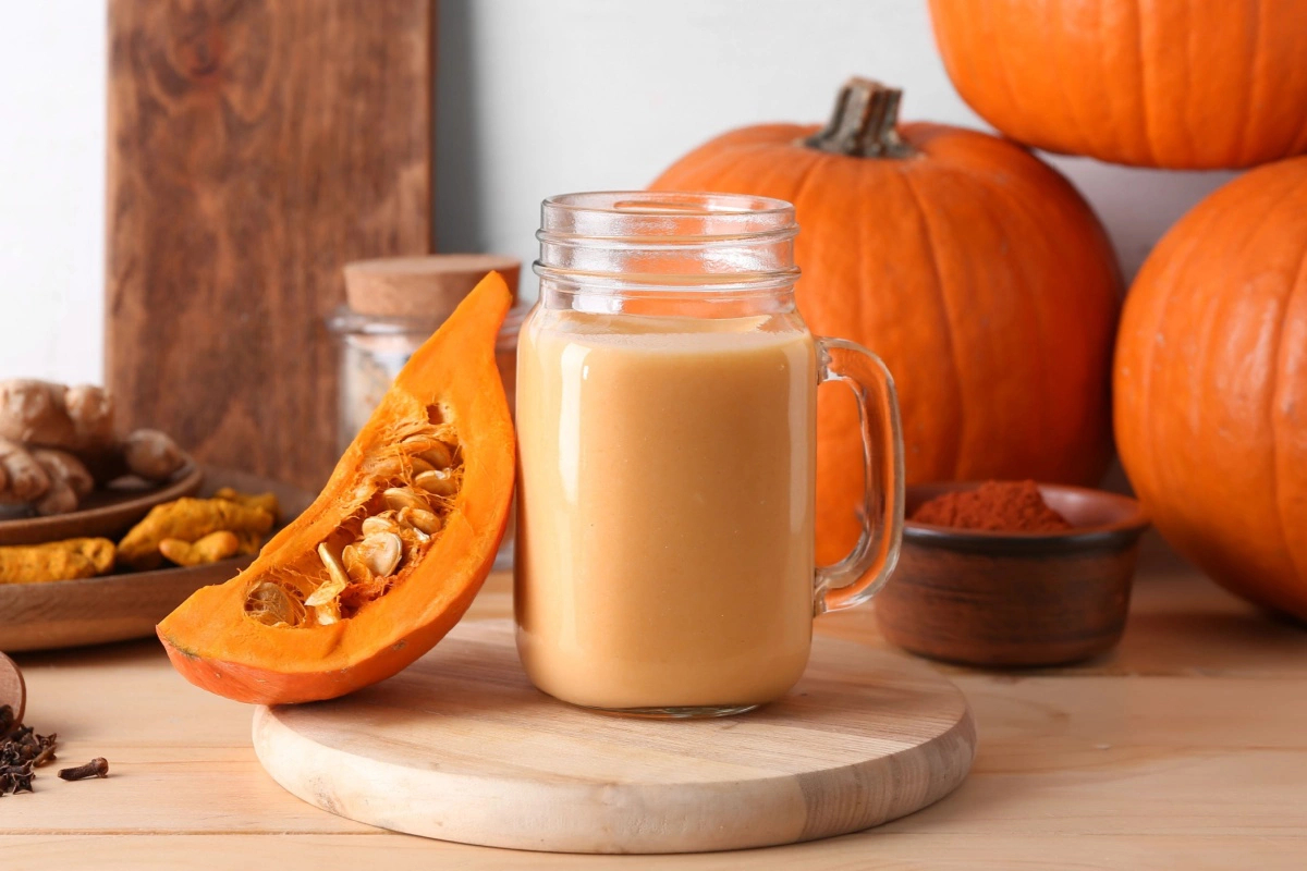 В этом уютном уголке осени, где каждый штрих насыщен запахом пряных специй и тыквенной мякоти, стоит скромная, но полная обаяния сцена. Прозрачный стакан с аппетитным тыквенным напитком, словно янтарь, удерживающий свет, приковывает взгляд. Рядом покоится щедрый ломоть тыквы, её семена, как воспоминание о летнем саде, шепчут о плодородии. За кадром слышится шелест древних страниц — это древняя поварская книга рассказывает свою историю из поколений в поколения. Оранжевая симфония тыкв и пряностей, застывшая на деревянной сцене, переносит нас в тёплый вечер у камина, где ароматное питье согревает не только руки, но и сердце. В этой гармонии осенний вечер обретает мелодию умиротворения и уюта.