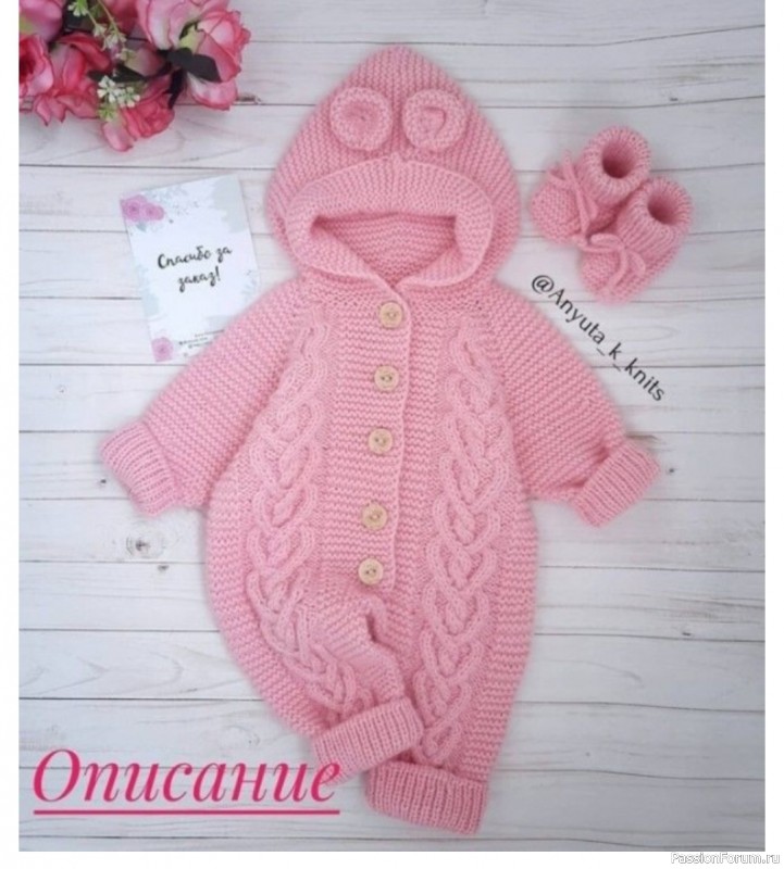 Детский комбинезон с капюшоном. Схема | Вязание спицами для детей