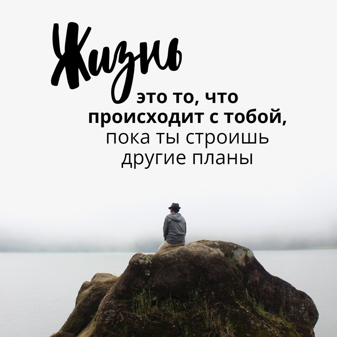 На переднем плане, на фоне бескрайнего озера и простирающегося к горизонту серого неба, сидит человек в одиночестве. Его взгляд устремлён вдаль, сквозь вуаль лёгкого тумана, как будто он стремится уловить шёпот вселенной, чтобы понять, что же скрывается за этой завесой. Ветер играет с его шляпой, как будто заигрывая с задумчивостью, которая сидит рядом, словно невидимый спутник. Пейзаж дышит спокойствием и мудростью, но в этом покое скрывается нечто иное — внутренние буря и метания души, которая ищет себя между строк, как между строками незримого сценария жизни. Над горизонтом возникает надпись, в которой заключена философская истина: "Жизнь — это то, что происходит с тобой, пока ты строишь другие планы". Эмоции переплетаются между словами и видом природы; это немая, но красноречивая сцена, говорящая о том, что каждый день наше существование является не чем иным, как гармонией случайного и задуманного. Невозможно остановить движение времени, но мы способны остановиться на мгновение, чтобы раствориться в настоящем, используя родник раздумий как напоминание о том, что истинное счастье находится здесь и сейчас.