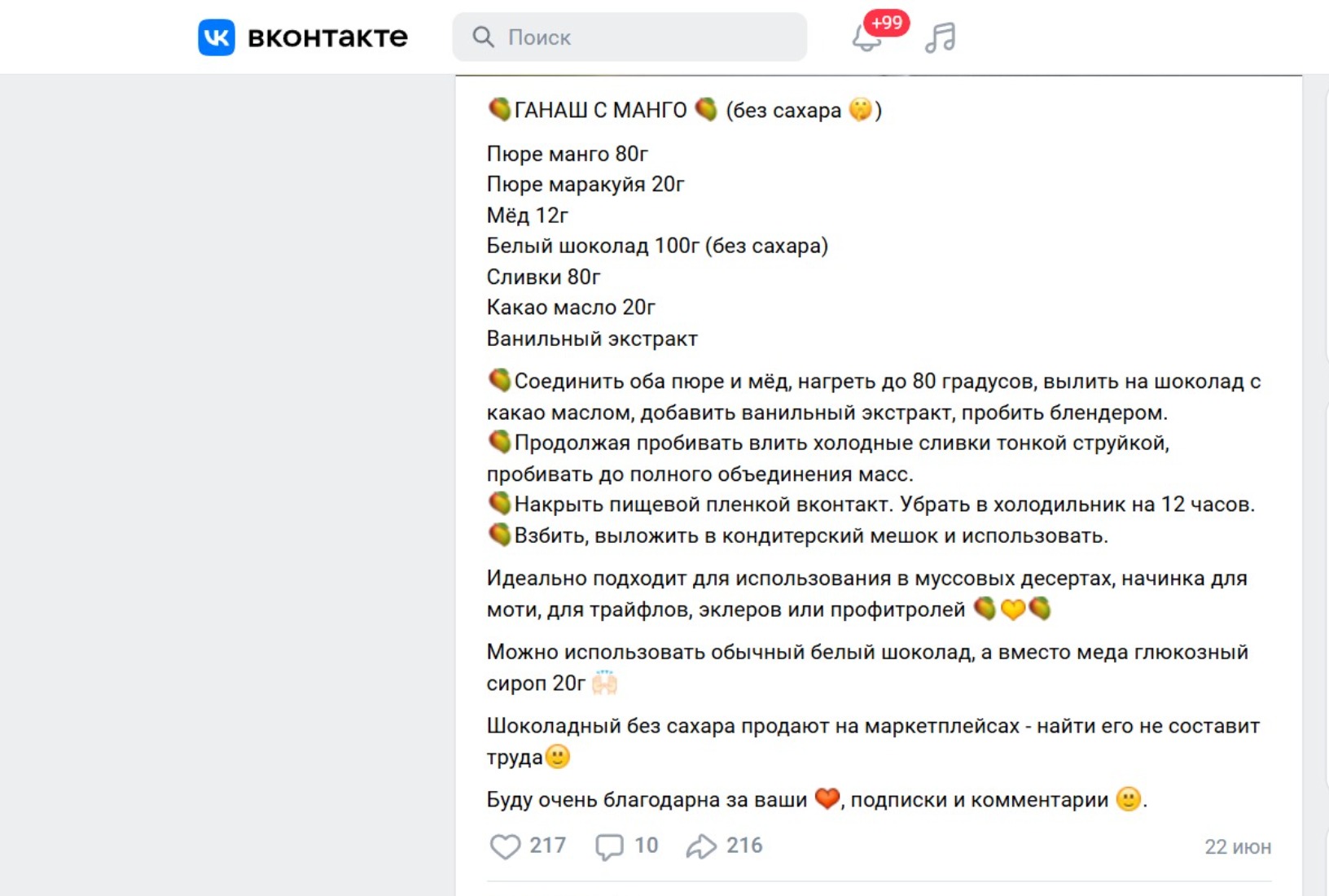 В уютной виртуальной мастерской, среди ароматов сладкого манго и пряной ванили, звучит голос волшебника кулинарии, увлекающий в мир экспериментального сладкого удовольствия. Пост, как утренний луч солнца, проливается сквозь страницы соцсети, обрамлённый милыми символами и теплом домашнего текстиля. Теперь манго и мёд – главные герои кулинарной пьесы. Взять их, смешать с пюре маракуйи, добавить какао-масло и ванильную ноту – всё это превращается в кремовую симфонию, танцующую на языке, словно ноты Бетховена на вечернем концерте. Всё кажется столь простым, но за каждым шагом скрыта кропотливая работа и абстрактное искусство. Описанные манипуляции из мира социальных сетей превращаются в ритуал, где алхимия превращает обычный рецепт в нечто завораживающее. Всё это предстаёт не просто рецептом, а отражением одной из возможных реальностей, где сахар отступает перед натиском естественных вкусов, и каждая ложка приносит ощущение безмятежности, как тихий шипящий дождь за окном. Отдохнуть, погрузиться в теплоту журнала – такой вот способ спрятаться от суеты мира, отдавшись сладкой неге онлайн-кухни.
