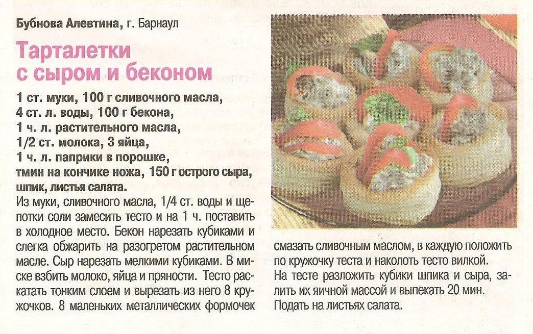 Тарталетки с сыром и беконом