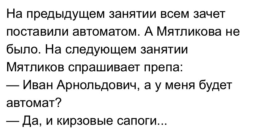 Тихие разговоры в тени аллеи студенческих лет, где раскинулось древо знаний, переплетаются с вкрадчивыми шепотами судьбы. Мятликов, молодой и дерзкий, в голове его роятся мятежные мысли. Перед мысленным взором возникают дважды запертые двери кабинетов, тяжесть папок, где сомнения сталкиваются с судьбой — будет ли автомат в их руках, словно билет в мир свободного времени? Однако Иван Арнольдович — шутник и философ — с загадочным блеском в глазах подбрасывает на весы судьбы неожиданный груз. "Да, и кирзовые сапоги..." — простая фраза, за которой скрывается глубинный смысл жизненного пути: ждать награды или быть готовым к новым испытаниям. Каждый символ тут — не просто бумагой служит, но поводом задуматься о том, как часто наши будни увековечены в самых простых и неожиданных отказных шаблонах. Стуки жизни за дверью — звук долгого пути, наполненного терпкостью юмора и неизбежностью необычных решений.