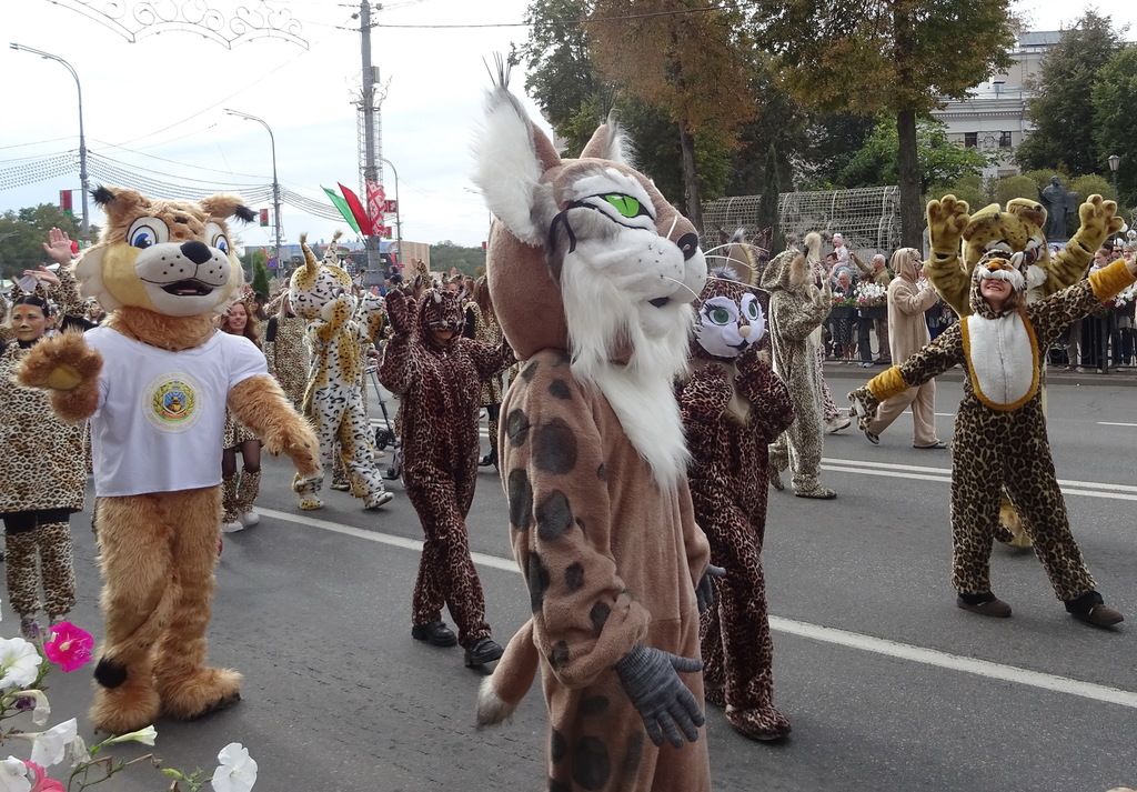 Через серебристую ткань утреннего облачного неба проникает свет, крадущийся по улицам городского карнавала, где разноцветные костюмы оживают, превращая асфальт в театр фантазий. Шеншиллы и львы, гигантские коты и жизнерадостные рыси маршируют в ритм фанфар, их огромные глаза глядят в души зрителей с искренностью детской наивности. Иллюзорная фауна из плюша и искусственного меха танцует среди прохожих, улыбка каждого зверя – приглашение в волшебный мир, где будни растворяются в калейдоскопе красок. Цветы, словно сошедшие с холстов неизвестного художника, украшают перспективу. Здесь, на пересечении реальности и сновидения, город обретает голоса будущего, которое обещает сказку. Внутри костюмов неизвестные герои, скрывшие лица и личные истории, сливаются с улицей, порождая симфонию человечности и добра. Здесь нет имени, нет пола, есть лишь величие коллективного чарующего пробуждения.