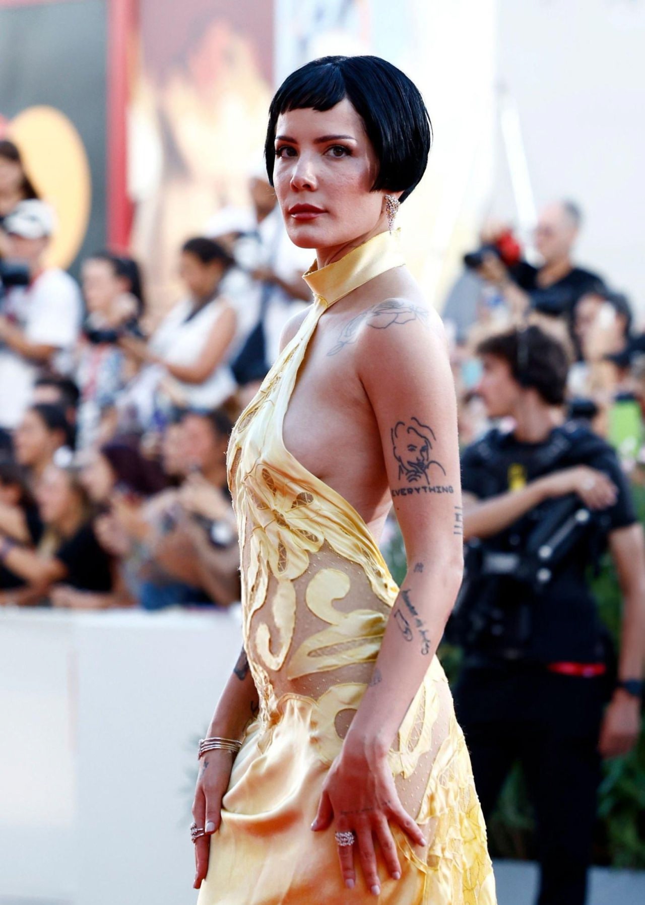 На этом ярком полотне городской жизни она — как золото, отлитое солнцем и инкрустированное звёздами, проходит сквозь толпу, словно драгоценный символ уходящей эпохи. Её взгляд, напряжённый и глубокий, остался в памяти на века, как древняя легенда, рассказанная в шёпоте весенним ветром. Рукава её платья, словно струи света, обнимают тело, создавая изысканную игру теней и света. Татуировки — это знаки на её коже, как строки стихов, рассказывают свою историю. Толпа застывает в восхищении, а в её шагах звучит музыка далёких миров. Голос улицы шепчет о её власти, идущей сквозь века, перемежая шёпот и крики фотографов. Каждый её жест — это миг, растянутый в вечность, символ её величия и красоты, обрамленной золотом жизни.