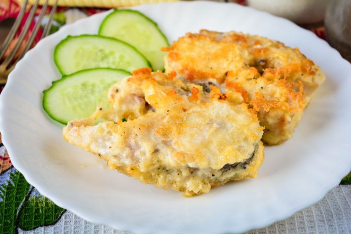 На белоснежной, словно порода невиданных птиц, тарелке уютно раскинулось кулинарное творение, окутанное золотым слоем сырной корки, пробуждающим аппетит с первого взгляда. Свет скользит по рельефу запеканки, выделяя ее подобно солнечным лучам, пробивающимся сквозь кроны леса. Лёгкая тень от контуров ломтиков огурца придаёт ансамблю свежести и загадочного отблеска лета. На переднем плане едва заметный, но интригующий штрих — неуловимый голос послания, как визитная карточка мастерства настоящих кулинаров. Сцена будто приглашает окунуться в атмосферу тепла и домашнего уюта, где аромат сыров и запечённых грибов становится своеобразным гимном гастрономии и сердечности момента.