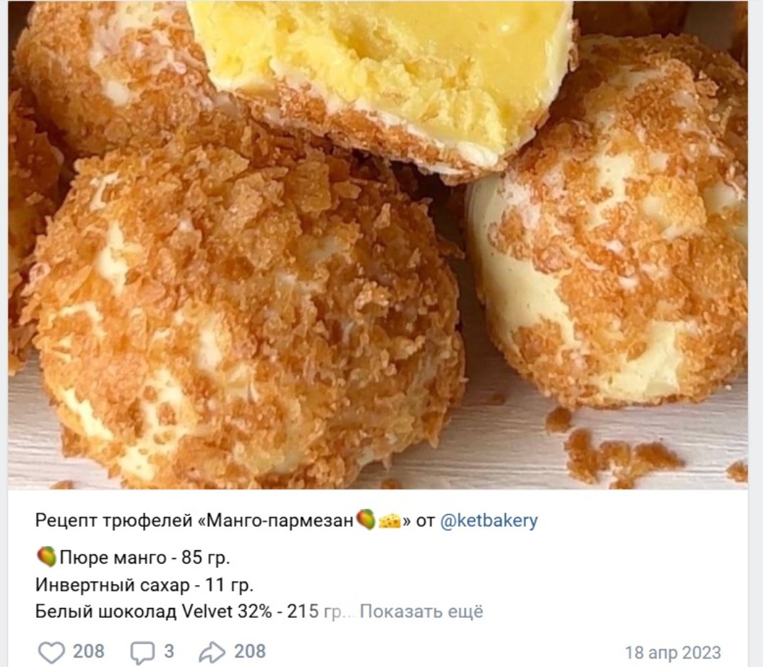Перед нами восхитительная аллегория вкусов, где нежные сферы трюфелей из манго и пармезана перекликаются с оттенками закатного солнца, вплетённого в обёртку золотистых крошек. Этот кулинарный интерьер вдохновлён изысканными мечтами о дальних странах — тропическая сладость манго дружески обнимает традиции итальянского сыра, создавая диалог культур на языке гастрономии. Каждая деталь, будь то белый шоколад Velvet, выступает в роли музыканта в оркестре для истинных гурманов, где сладость не перегружает, а освежает. Здесь, на фоне изысканной простоты и вкусовой гармонии, можно услышать тихий шепот улиц Парижа, где кондитерские изыскания превращаются в искусства. Вот, словно книга без названия, этот рецепт открывает новые горизонты самовыражения для истинных ценителей десертов.