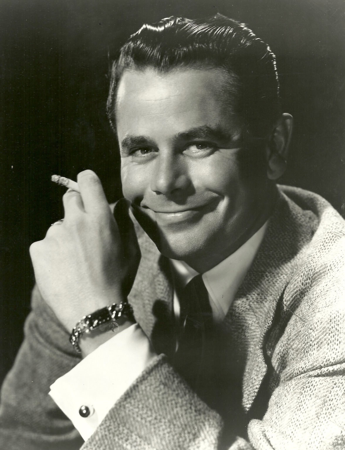 Мягкий свет, словно кистью художника, освещает лицо мужчины, окутанного атмосферой старого кино. Его улыбка — это загадка, скрывающая истории о прошедшем времени, когда сигарета в руках была не только стилем, но и символом независимости. Мягкость ткани его костюма контрастирует с грубостью времени, когда мужчины были джентльменами, а улицы кипели авто и ревущими голосами джаза. Наручные часы на запястье — немой свидетель мгновений, которых уже не вернуть. Взгляд его отзывается рябью воспоминаний, оставшихся в черно-белом цвете историй прошлого. Он может быть героем какого-то забытого романа, человек без имени, но с историей, о которой лишь немного говорят. Вся сцена — как всплывшая на поверхность пленка из архива памяти, где время застыло в черных и белых тонах.