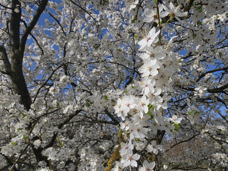 Яркое солнце играет с лепестками, тонкими и прозрачными, как крылья фей из детской сказки. Это время года, когда природа просыпается, одевая деревья в белоснежные наряды, словно они готовятся к весеннему балу. Под влиянием лёгкого ветра дерево становится хороводом невидимых танцоров, а земля, усыпанная белым цветом, напоминает старинный ковёр. Где-то вдали звук музыки - эхо жизни, захватывающее и уносящее в беспечный мир детских грёз. Голубое небо, ненавязчивый и молчаливый свидетель этого парада, служит идеальным фоном. В сердце просыпается лёгкость, и тишина становится симфонией, наполненной шёпотом лепестков и долгожданной свежестью весны.