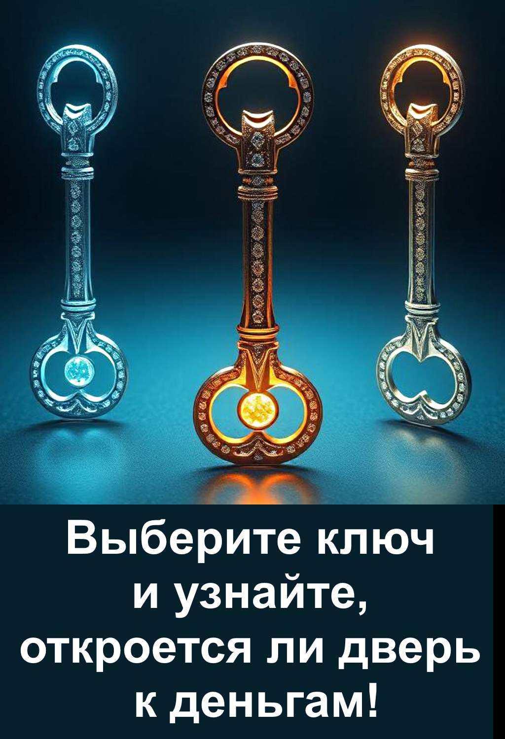 Ключи издавна считались символом силы, защиты и доступа к тайным знаниям. Они способны подсказать человеку, какая дорога перед ним открыта. Перед вами необычный тест, который поможет понять, ждёт ли вас денежная удача. Сделайте свой выбор интуитивно и прочитайте, какое послание несёт ваш ключ. Судьба подскажет, откроется ли дверь к деньгам именно для вас, и каким образом это может произойти.