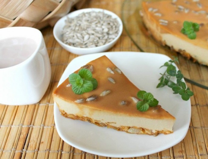 Карамельный торт Ингредиенты:Сахар — 1,5 стак.Сливки — 250 мл Масло сливочное — 50 г Творог — 500 г Сметана густая — 200 мл Желатин — 30 г Изюм — 4 ст. л. Семечки — 4 ст. л. Хлопья кукурузные — 70 г Соль —...