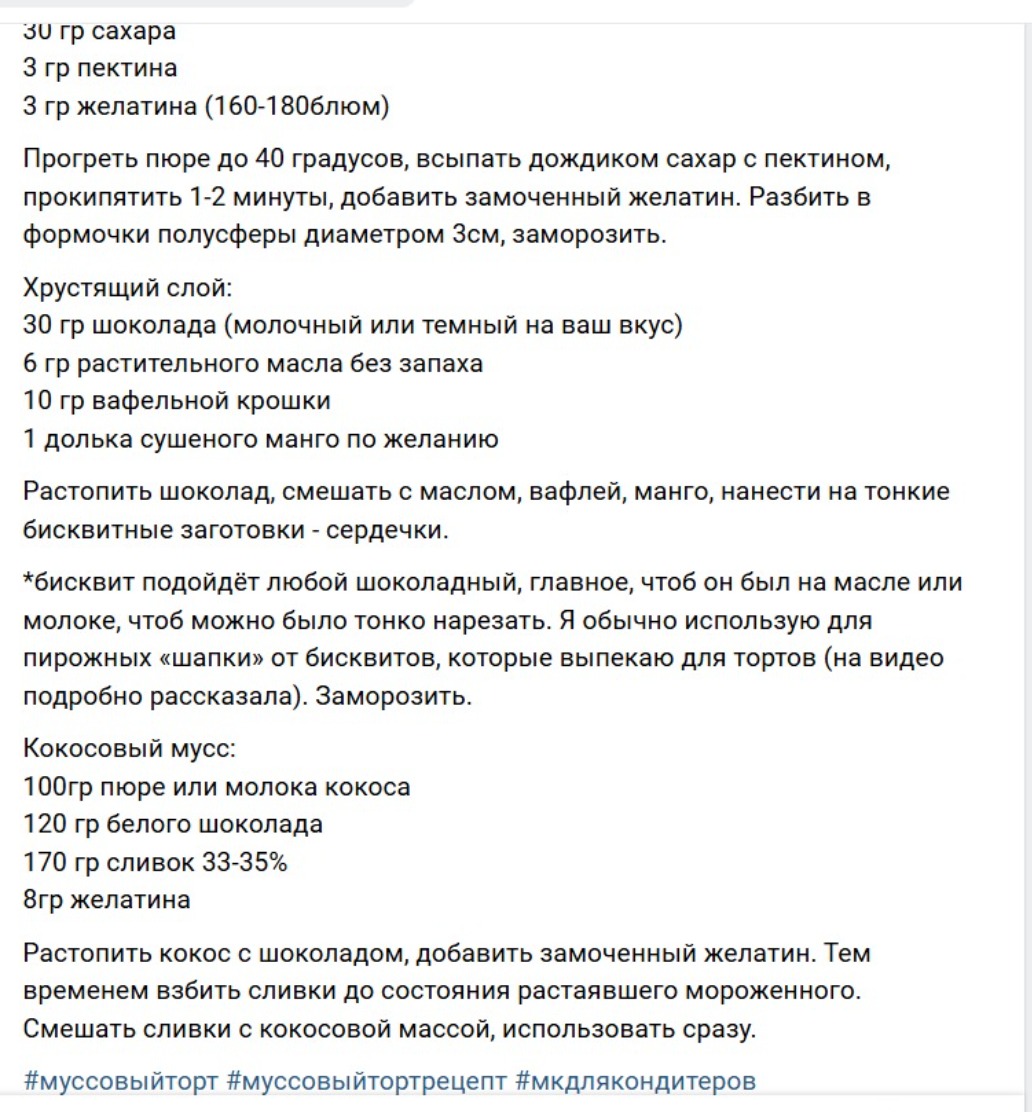 Под молочным светом кухни, где время замедляет свой бег, словно бы уходя из суеты в спокойствие, текст рецепта оживает, превращая слова и цифры в мерцающую феерию. Шоколад, как загадочная симфония ароматов, переплетается с тонкими, почти прозрачными струями жидкого золота — фруктовое пюре, медленно сгущающееся в полусферах. Магия этих кулинарных заклинаний скрыта в некрупных формочках, которые замерли в ожидании заморозки и последующего шоу вкусов. Здесь, на страницах бумажной истории, оживает кокосовый мусс, будто ушедшие в зимнюю сказку молекулы тропиков решили ткать сны о летнем солнце. Крошечные дольки манго, словно забытые солнцем в прибрежных волнах, манят воспоминаниями. Загадочные сердца, таинственно упрятанные в тенях печи, подготавливаются к встрече с шоколадом и этерично-нежным кокосовым муссом. Это не просто рецепт — это картина, написанная на полотне из сахарных гранул и персиковых аккордов. Ведь в каждом слове скрыт не только вкус, но и маленькая мечта о грандиозном празднике вкуса.