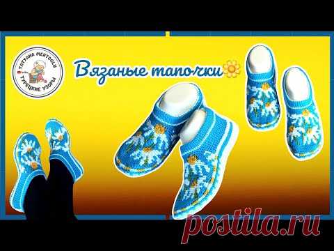 Вязаные тапочки "Ромашки"💥вяжем спицами