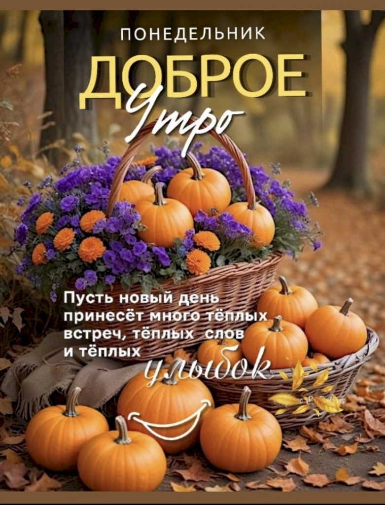 Яркое утро врывается в понедельник, как палитра осенних листьев. Плетёная корзина, словно сказочное вместилище солнца, изобилует тыквами, заключёнными в объятия фиолетовых астр и оранжевых хризантем. Окружённые ковром листьев, они излучают тепло и умиротворение. Это утро, где тыквы не просто плоды, а сияющие лампы надежды, освещающие путь к новому дню. Шёпот листвы и милый голос напутствуют нас: «Пусть день будет полон улыбок и тепла». Эти слова – как лёгкий бриз, приносящий с собой сказку о добром утре, утопающем в свечении осеннего волшебства. И когда мы смотрим на эту сцену, сердце наполняется ощущением безмятежности и спокойствия. Это утро обещает принести не просто радость, но и чувство домируются, нежно напоминая о цикле природы, где каждый понедельник становится неминуемой встречей с красотой.