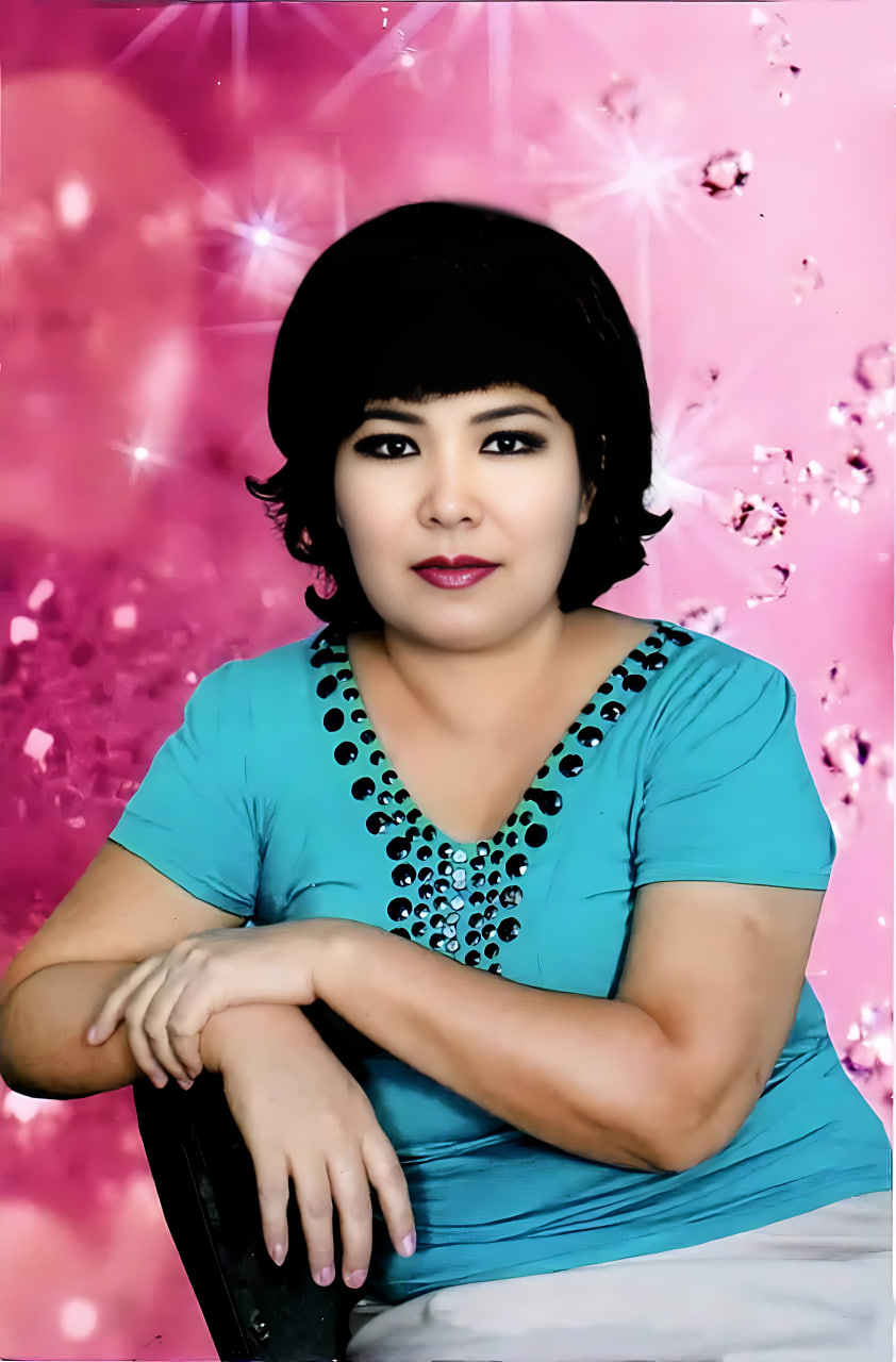В феерии розового света, будто вселенная, сотканная из отполированных граней кристаллов, сидит женщина с выражением загадочной уверенности. Её бирюзовая блуза, украшенная россыпью чёрных камней, напоминает океанские волны, которые, разбиваясь о скалы, оставляют позади себя пенную кромку. Глаза её, словно вечерние угли, отражают свет и собирают в себе миры. Эта сцена — словно кадр из фильма, в котором героиня только начинает свой рассказ. А фон — розовое безмолвие — становится воспоминанием о тёплых летних вечерах, когда мир был юн и полон мечтаний. Словно слова, потерянные в ночи, это сочетание цвета и тени превращает обыденность в поэму. И всё это звучит как тёплый шёпот о глубине человеческой личности, скрывающейся за иллюзорной простотой экрана и слов.
