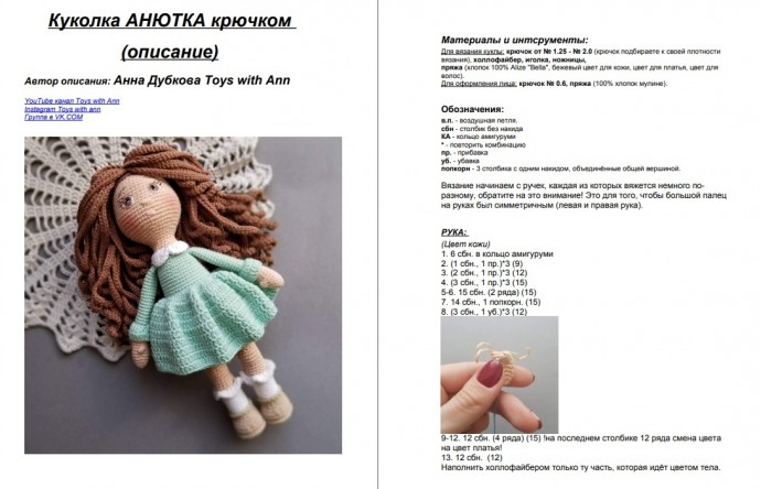 На этом изображении оживает маленькая сказка — кукла Анюта, связанная крючком и облачённая в нежное бирюзовое платье, как будто бы невесомое облачко, проплывающее по летнему небу. Волосы её, каштановые локоны, словно у Пушкиновской Татьяны, спадают по кружевной скатерти, превращая обыденность в магию. Рядом — инструкция, точно шёпот мастерицы, говорящий о том, как создать красоту своими руками, словно придавая нитям чувства и характер. Каждая строка, как нотный стан, методично пробуждает образ — теплота шерстяных текстур, аромат чая с жасмином и щебет детских голосов, плавно перетекающих в кукольную иллюзию. В этом творении нетипичная простота соединяется с глубиной народного умельчества, где нитка соединяет миры и времена — от бабушкиных узоров до современных творческих порывов.