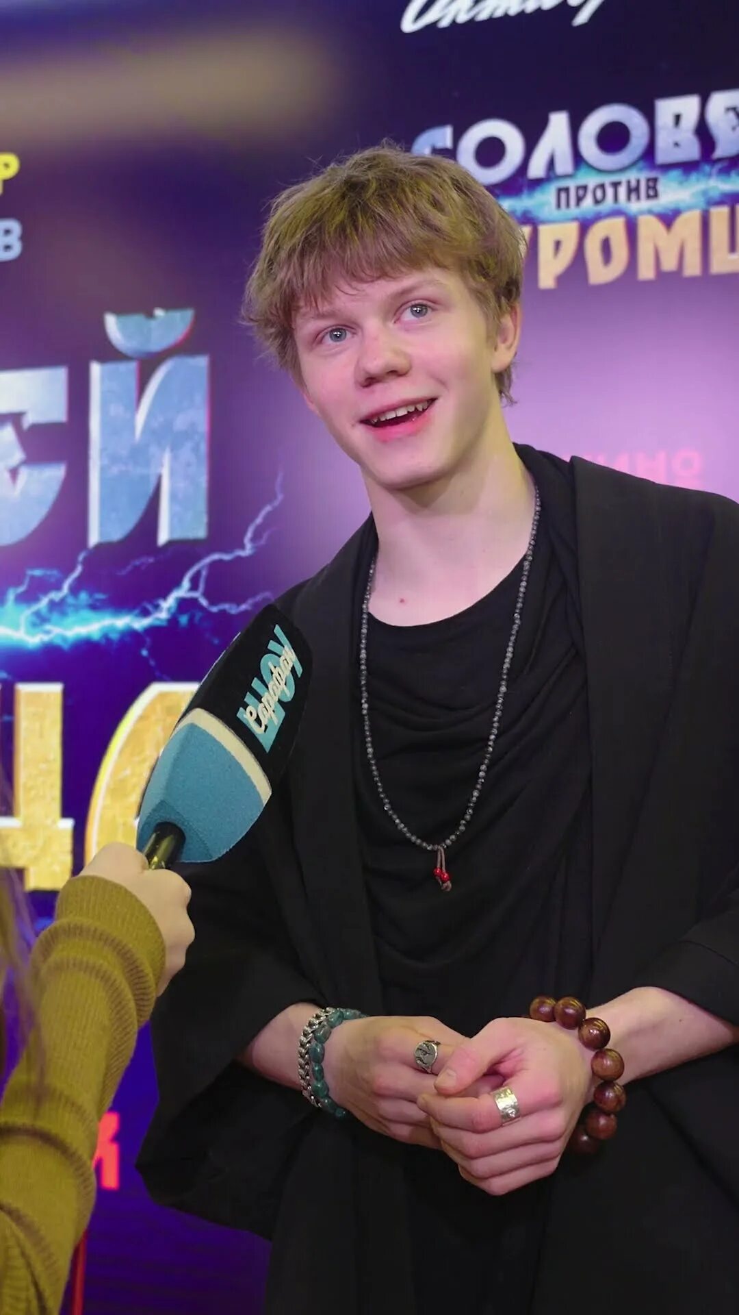 В вихре ярких светов и гулких голосов, будто эхо далекой грозы, раскрывается мир на холсте рутинной суеты. Юноша, с мечтательным блеском в глазах, символизирует росчерк юности в бездне светящихся вывесок. Вопрос застыл в пространстве между ладонью с микрофоном и его улыбкой – неуловимым переливом горных ручьев после дождя. Браслеты и кольца, словно путеводные звезды, дополняют ансамбль, придавая сцене мистический оттенок, где герой, метавшись меж светом и тенью, готовится к новой странице своей истории. Голоса, запечатленные на поверхности экрана, сливаются с гулом толпы, создавая симфонию, в которой каждое слово – это удар сердца, каждый взгляд – напоминание о том, что даже в самой яркой иллюминации можно найти отголосок искренности.