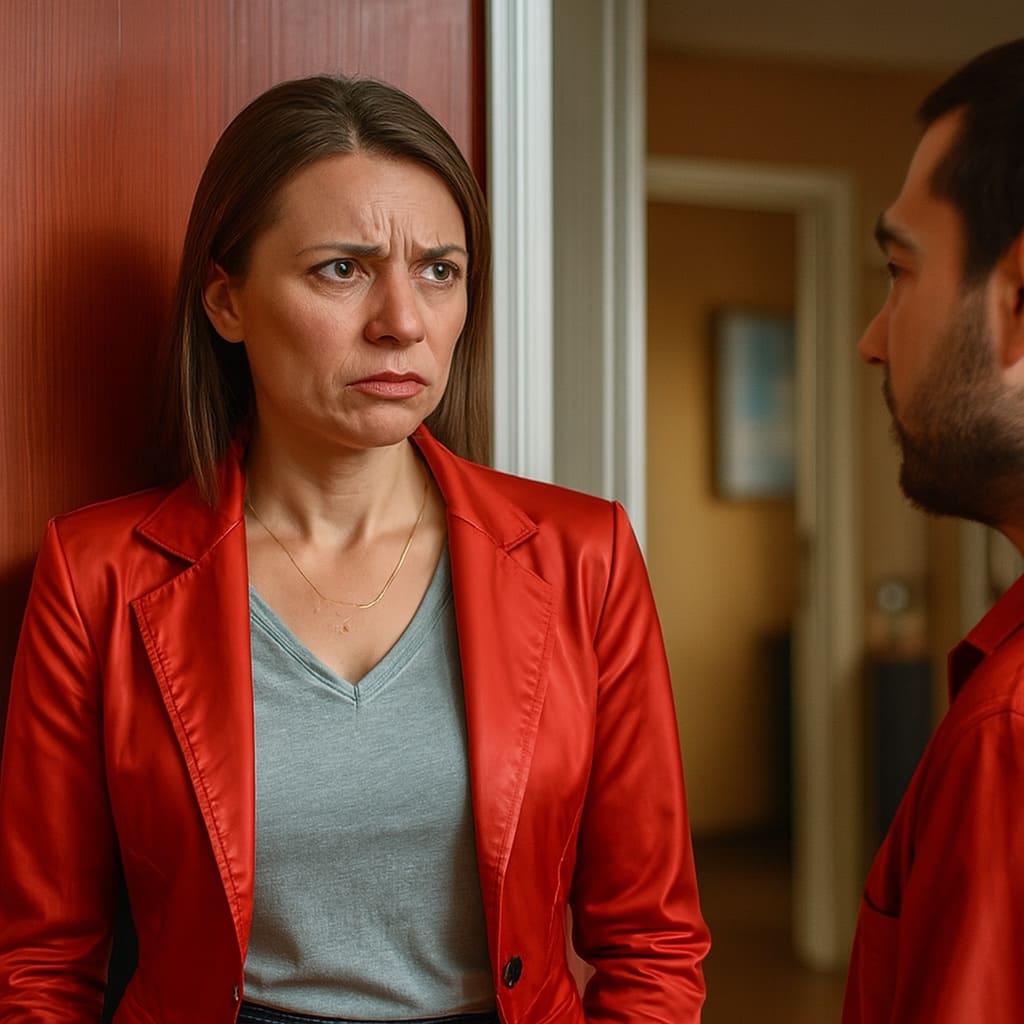 В лакированной палитре насыщенного красного, словно краска вечернего неба, обволакивающего горизонты, застыла сцена молчаливого напряжения. Женщина в ярком пиджаке, как алый барьер на пути к решению жизненного уравнения, с непроницаемой серьезностью взирает на собеседника. В её глазах, как в бездонных колодцах, манящая глубина, прогнозирующая бурю, словно на полотнах великих мастеров, чей стиль пронизан нотами дождя и электрических разрядов. Вблизи свет мягко журчит, отражая теневые контуры, неровной линией облизывая стены. Разговор между двумя персонажами незримой пьесы наводит на мысли о хрупкости человеческого понимания, как линия горизонта — тонкая грань между днем и ночью. Интонации и полутона переливаются невидимыми аккордами тишины, напоминающей море перед штормом.