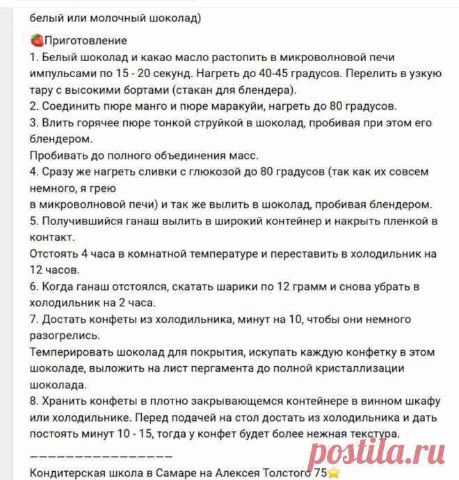В душной комнате, где сладкий аромат шоколада мешается с пряными нотками экзотики, таится магия кулинарного творчества. Невидимый мастер, словно чародей, аккуратно соединяет воедино белоснежный шоколад и масло какао, поэтапно раскрывая их тайные свойства микроволновыми заклинаниями. Этот дуэт плавно перетекает в нечто большее, по мере того как горячее пюре манго с маракуйей, воплощая дух тропиков, вливается в белый поток сладкой лавы. Загадочное искусство, в котором сочетаются теория алхимии и практика современности, поэт превращает в сладостную симфонию из глюкозы и сливок, подогретых до вполне могущественных 80 градусов. Этот философский диалог вкусов предстаёт в виде ганаша — концептуального элемента кулинарного мира, нежно скрытого под плёнкой ожидания. Время медленно тянется, словно в старинной лаборатории, пока круглый идеал из 12-граммовых сфер с неуловимой грацией не отправляется в хрустальное царство холода. Ожидание, тишина и наблюдение — тройная загадка, раскрытая в пергаменте трюфеля. Эти маленькие драгоценности хранят тайну искусства, которую можно постичь только через восхищение и предвкушение праздничного чуда, созданного в кондитерской школе Самары.