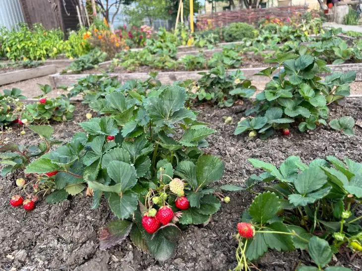 В этом благословенном уголке сада жизнь распахивается навстречу солнцу яркими оттенками летних ягод. Кусты клубники, словно маленькие вселенные, пульсируют зеленью, надёжно спрятав под листвой алые и жёлтые плоды. Земля удерживает тайну тёплых дней, когда каждый лист шепчет о свежем дожде и тягучем летнем воздухе. Их всполохи красок напоминают мазки кисти, будто сама природа решила стать художником. Вдали, за пределами кадра, слышится неторопливый разговор деревьев, их ветви когтями чёрных контуров царапают хрустальную синь неба. В то время, когда аромат свежей клубники наполняет ноздри, возникает ощущение, что это мгновение вечности, существующее за пределами времени.