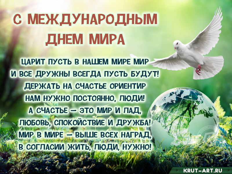 Пусть будет мир везде, всегда, И не воюют страны, И миротворцев в их трудах Успех ждёт, постоянно!