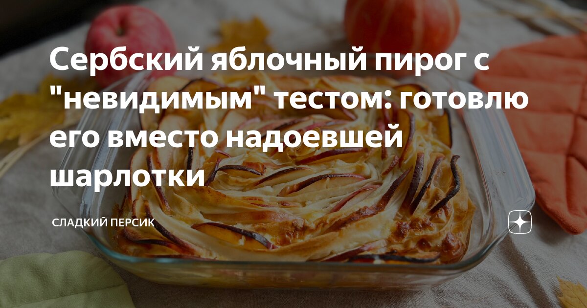 Сербский яблочный пирог с "невидимым" тестом: готовлю его вместо надоевшей шарлотки Статья автора «Сладкий Персик» в Дзене ✍: Сегодня у нас пирог с яблоками из теста филло. Очень вкусный и красивый!
