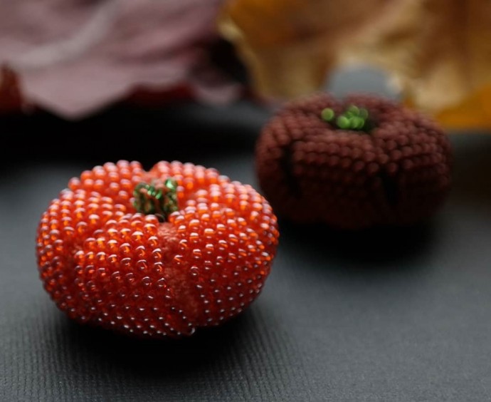 Набираем 588 бисерин основного цвета.Можно перед ними ещё набрать 20-24 зелёных бисерины для хвостика.Тыковка будет делиться на 6 долек..1. 6 воздушных петель, замыкаем в кольцо.2. 12 сбн. По 2 столбика в каждую петлю. Этот ряд вяжется пока без бисера.3. Начинаем делать...