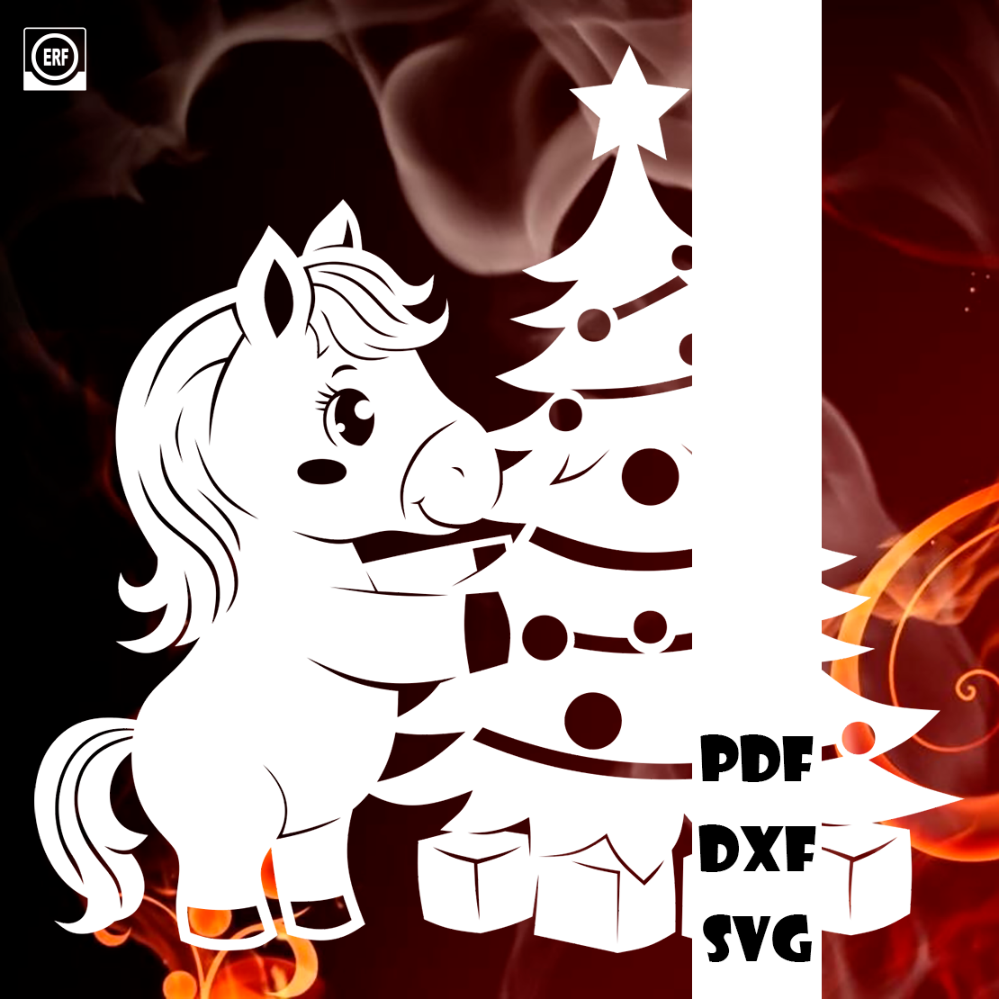 Лошадка наряжает ёлку #вытынанки #вытинанки #вырезки #svg #dxf #pdf #макет #шаблон #трафарет #вектор вытынанки вытинанки вырезки svg dxf pdf макеты шаблоны трафарет вектор оформление окон панно наклейка лобзик лазер чпу выцінанка витинанка выцинанка вытыканка