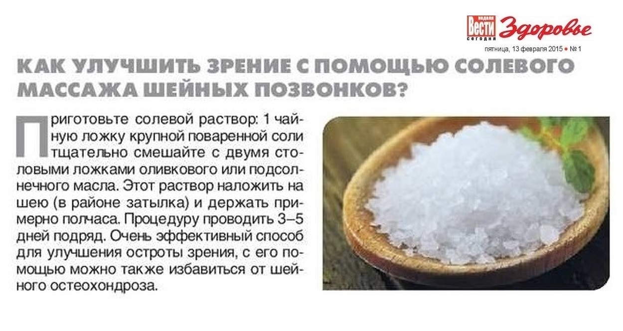 Как улучшить зрение с помощью солевого массажа шейных позвонков