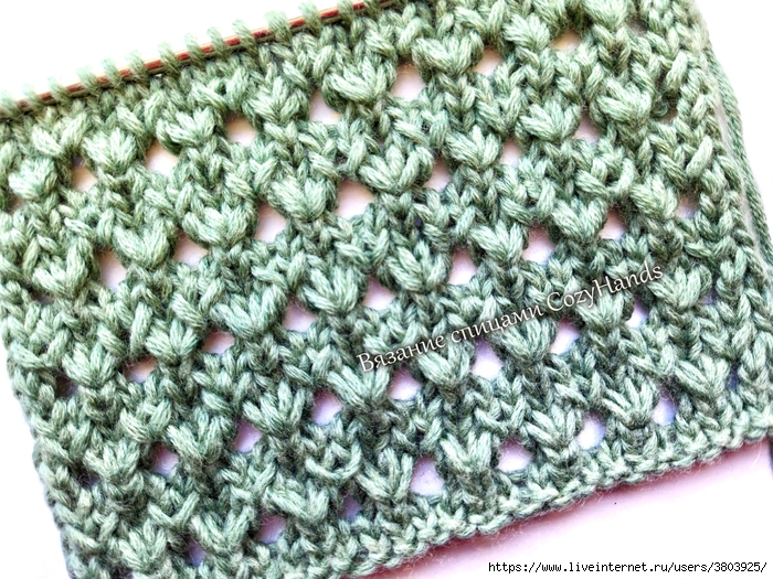 Симпатичный фактурный узор с ажуром (объёмная сетка спицами)