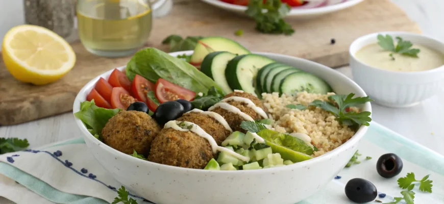 Если вы хотите разнообразить своё меню свежими, сытными и полезными блюдами, такие блюда как этот вегетарианский  боул станут настоящей находкой. Они сочетают яркие овощи, полезные злаки, белок растительного происхождения и ароматные пряности, создавая идеальный баланс вкуса и пользы. Вегетарианский боул обеспечит полноценное сбалансированное питание и его удобно взять с собой в дорогу или на работу.