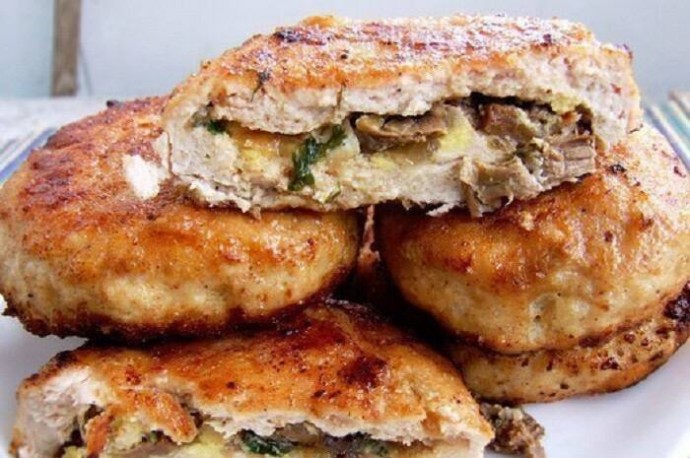 Зразы из курицы с грибами и яйцами