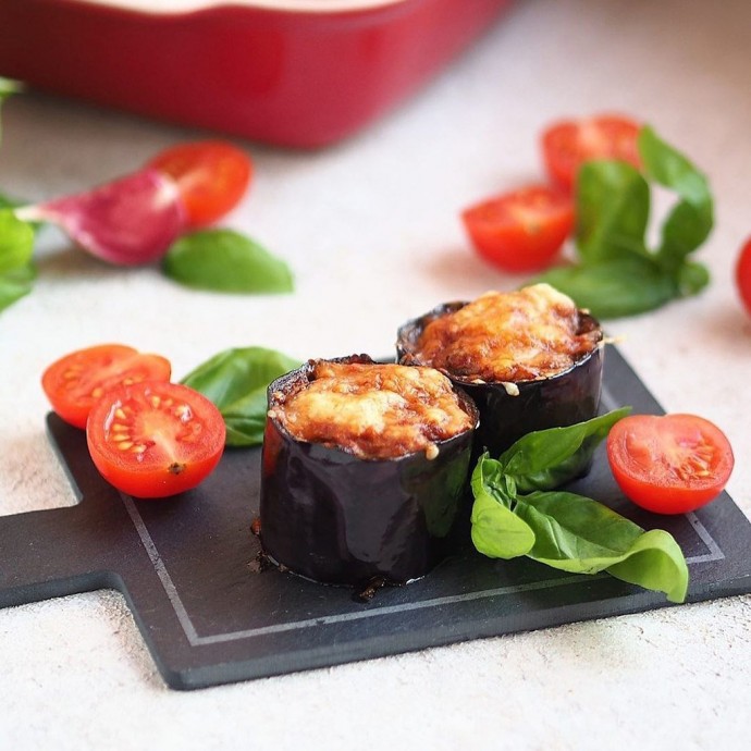Фаршированные баклажаны Ингредиенты для небольшой порции:Баклажаны среднего размера — 2 шт. Филе индейки или курицы — 100 г Томатный соус — 150 г Сыр полутвёрдый — 20 г Растительное масло — для жарки Соль — по вкусу