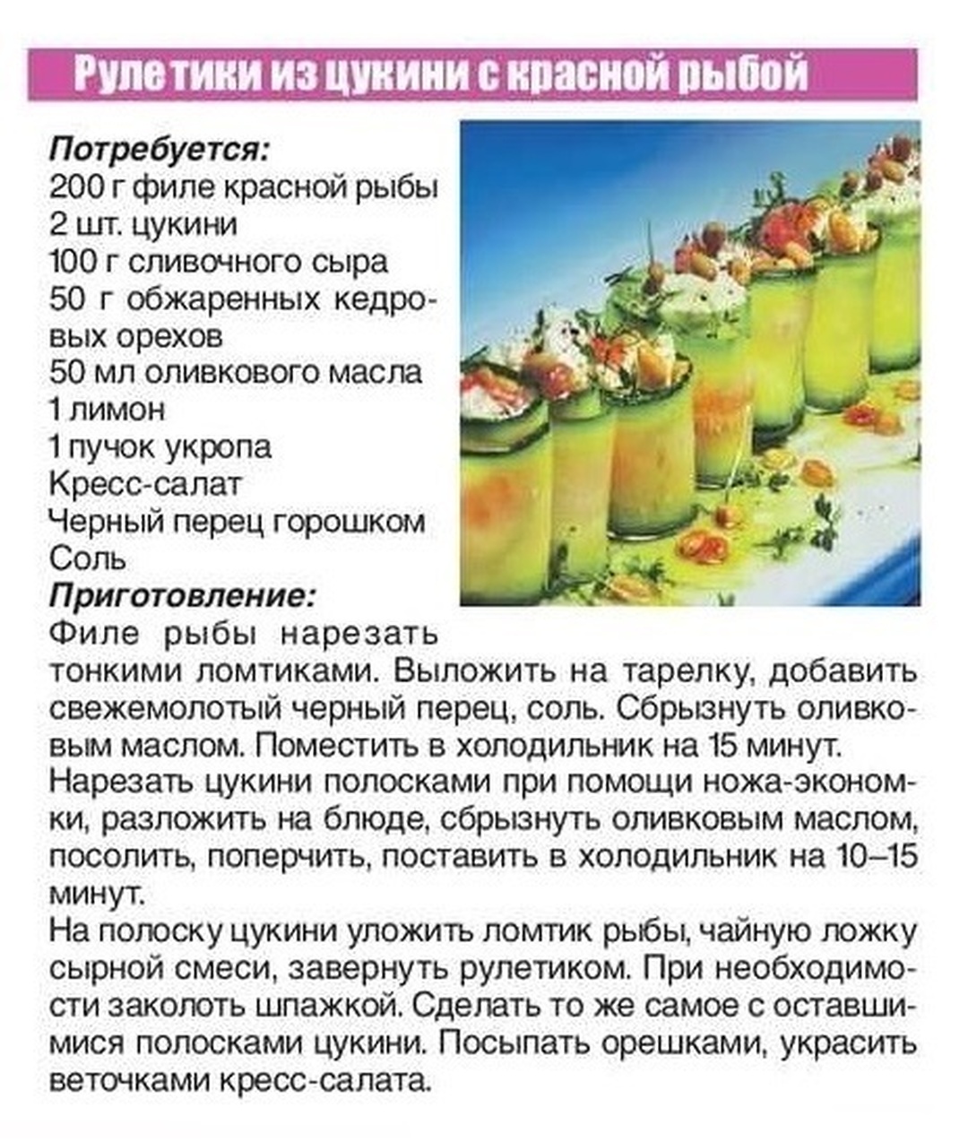 Рулетики из цукини с красной рыбой