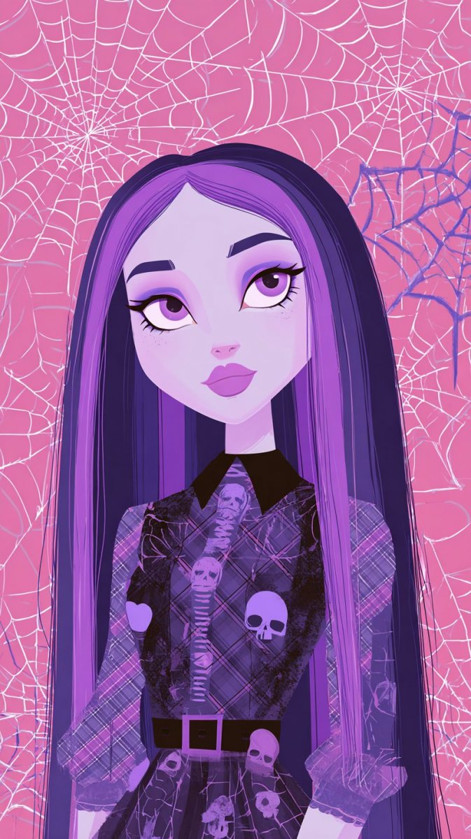 Готская красотка из Monster High: цифровой портрет с фиолетовыми волосами и кружевным платьем. Нейронная сеть Midjourney - Midjourney примеры промтов - Форум ИИ о нейросетях - Yes Ai