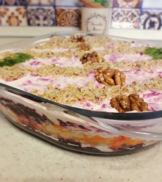 Салат «Тамерлан» с курицей и черносливом Ингредиенты: 200 г куриного филе 100 г чернослива 100 г сыра 1 морковь 2 средние свеклы 100 г грецких орехов 2 зубчика чеснока майонез по вкусу соль и перец Приготовление: 1. Отваренную свеклу натереть на терке и добавить пропущенный через пресс чеснок, хорошо перемешать. 2. Отваренную морковь и сыр натереть на крупной терке и тоже перемешать. 3. Чернослив, который предварительно замочили, нарезать небольшими кусочками....