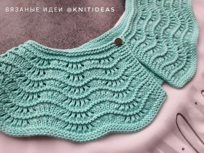 Нежный воротник спицами Для вязания потребуется:- Пряжа "Baby cotton" от WELTUS (для "Кутнор") 180 м/50 гр, состав - 100% египетский хлопок.- Круговые спицы № 2Рапорт 9 петель в начале вязания, затем идет расширение.Моя плотность вязания 2,8 п в 1 см.На обхват шеи 46 см я набрала 9 п *14 раппортов +8 (кромочные)...