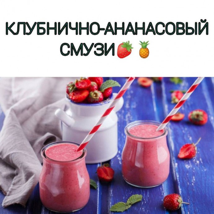 Клубнично-ананасовый смузи ИНГРЕДИЕНТЫ:150 г клубники 100 г ананаса 70 г шпината ⠀ СПОСОБ ПРИГОТОВЛЕНИЯ: Положите все ингредиенты в чашу блендера Взбейте все до однородной массы Ваш смузи готов! Приятного аппетита!