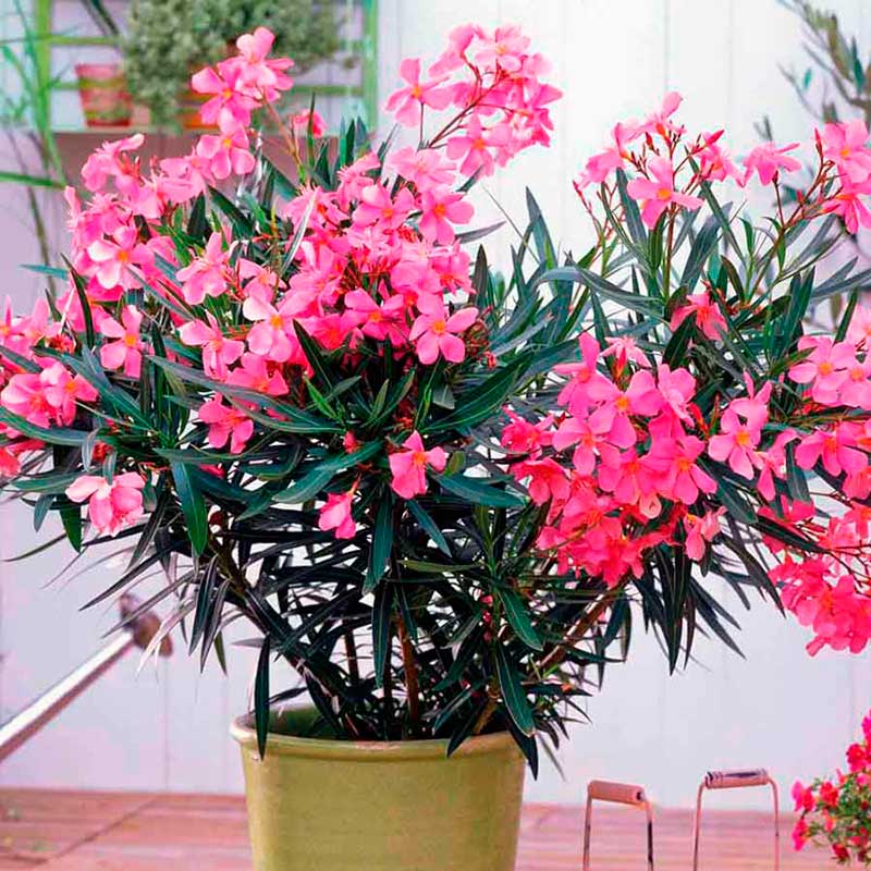 Комнатное растение Олеандр (Nerium). Название растения происходит от греческих слов neros, nerion - "влажный", "сырой" и намекает на места произрастания олеандра. Олеандры растут во влажных районах с мягким морским климатом на юге Европы, севере Африки и на Дальнем Востоке. Цветки розовые, лососевые, белые или красные.