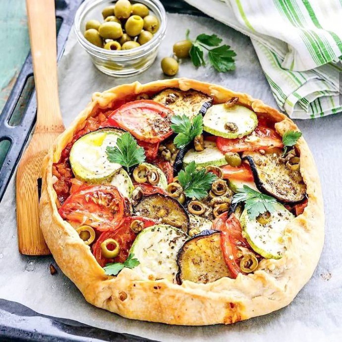 Рататуй на хрустящейгалете Ингредиенты:Тесто: 200 гр пшеничной муки 80 мл растительного масла ️80 мл воды или растительного молока ️0,5 ч.л. соли Начинка: 1 ср. цукини 1 ср. баклажан 4 помидора 100-150 гр оливок 3-5 з. чеснока 0,5 ч.л. смеси прованских сухих...