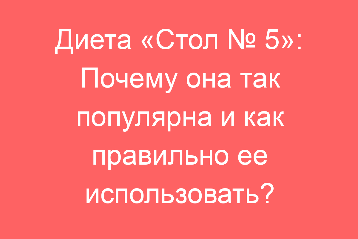 Диета «Стол № 5»: Почему она так популярна и как правильно ее использовать?