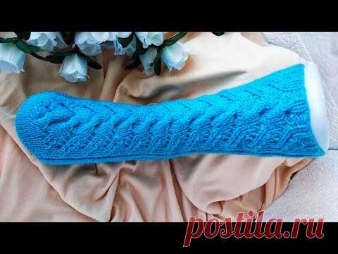 Узор ручеек на вязаных носках / ажурный, подробный узор, схема в видео.