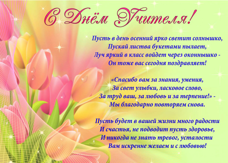 Картинка с Днем учителя с пожеланием в стихах, открытка на день учителя