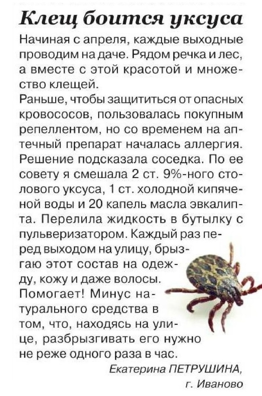 Клещ боится уксуса