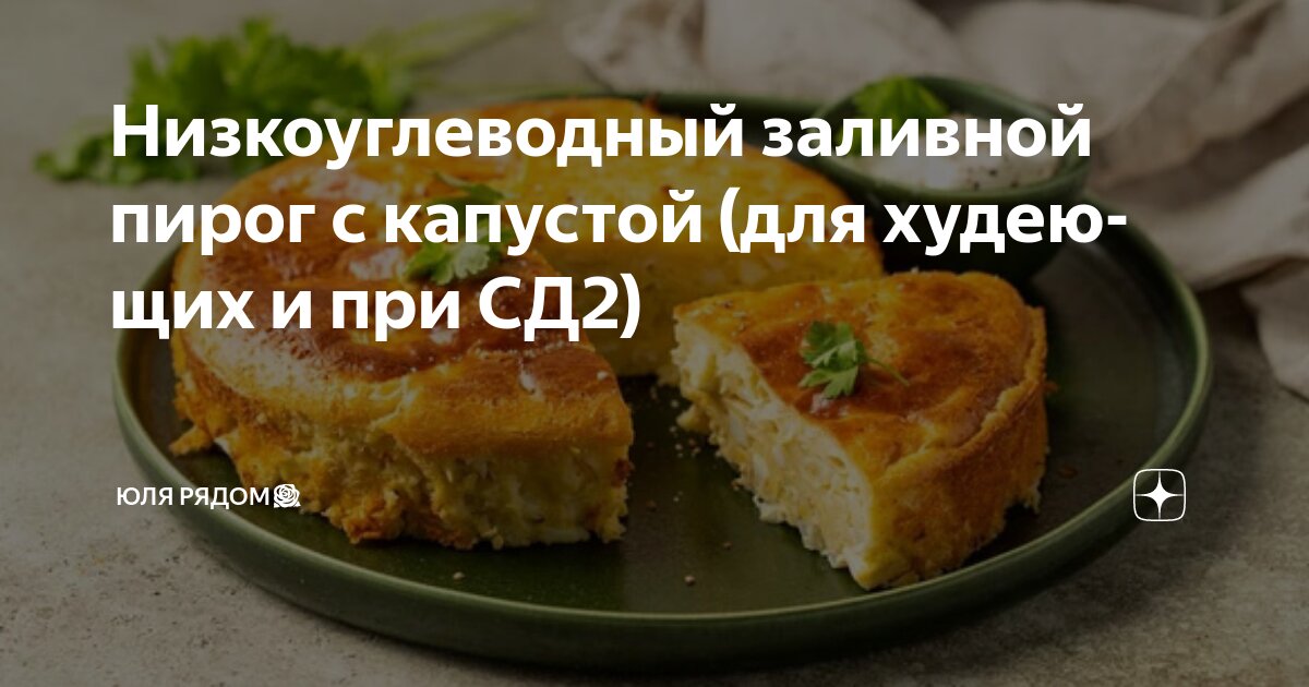 Низкоуглеводный заливной пирог с капустой (для худеющих и при СД2) Статья автора «Юля рядом🌹» в Дзене ✍: Здравствуйте, дорогие мои друзья! Чего больше всего не хватает и хочется при низкоуглеводных диетах? Правильно, выпечки и сладкого.