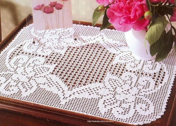​Оригинальная салфетка Оригинальная салфеткаЭта салфетка выполнена в технике филейного вязания.