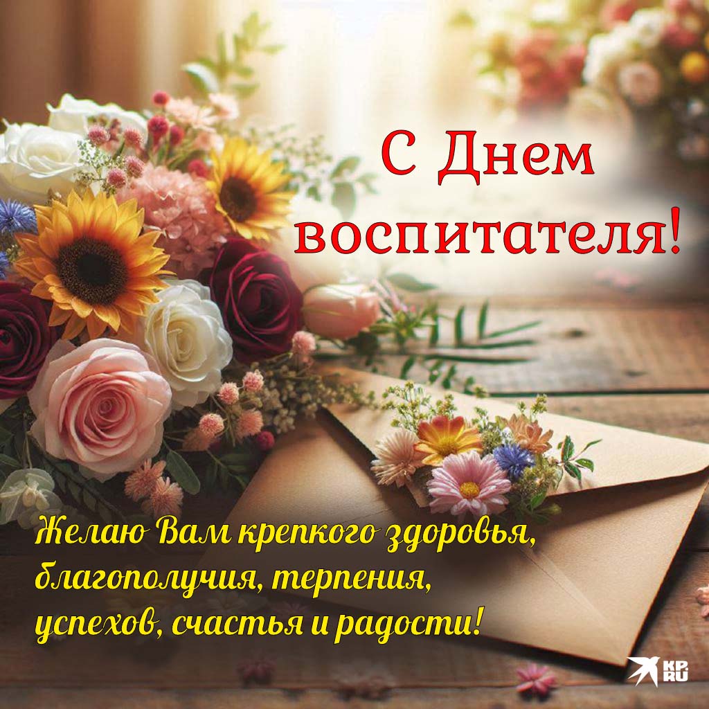 С Днем воспитателя! Пусть ваши дни будут наполнены радостью, а дети всегда удивляют вас своей искренностью и открытостью. Ведь именно вы, как первые учителя, закладываете основы будущего. Ваш труд неоценим, и мы благодарны за все, что вы делаете! Пусть вам всегда сопутствует удача, а работа приносит радость и удовлетворение. Открытки на День воспитателя.
