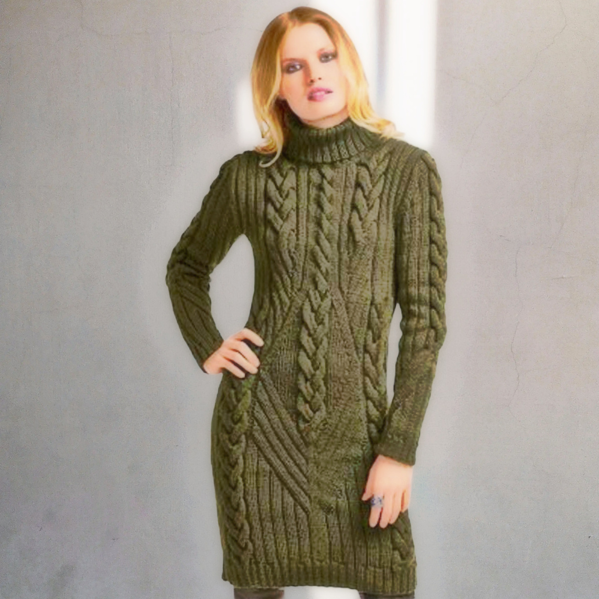 Оливковое платье-туника, мини-платье цвета хаки и ещё 2 платья-трапеции спицами | Вязание с Paradosik_Handmade | Дзен