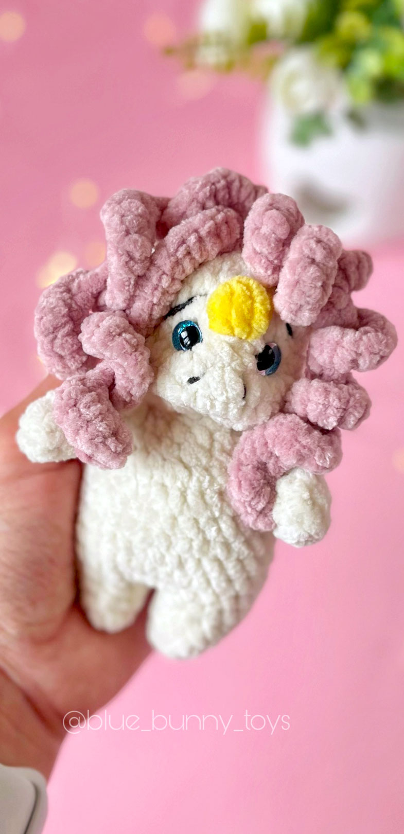 PDF Единорожка крючком. FREE crochet pattern; Аmigurumi animal patterns. Амигуруми схемы и описания на русском. Вязаные игрушки и поделки своими руками #amimore - плюшевый единорог, маленькая единорожка из плюшевой пряжи.